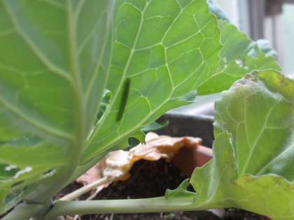 ゴールデンウィーク前,葉っぱには小さなモンシロチョウの卵が。