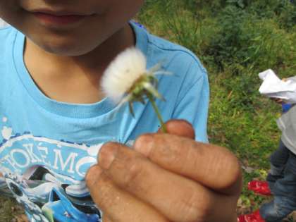 国語でたんぽぽのちえを学習しているので,子ども達は,わた毛を見つけてとても嬉しそうにしていました。学校のどこにたんぽぽがあるのか探している子もいて,ほほえましかったです。