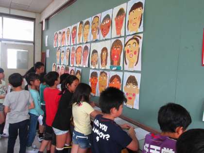4月のはじめに,それぞれが鏡を見て書いた自画像を鑑賞しました。