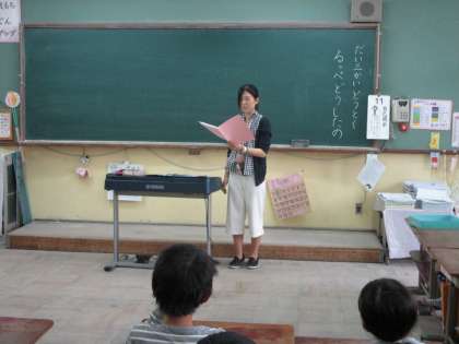 資料「るっぺ どうしたの」の主人公るっぺの言動を考えることから,わがままをせず,規則正しい生活をしようとする態度を養いました。
