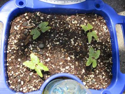 生活科で植えたアサガオの種が,さっそく芽を出しました。