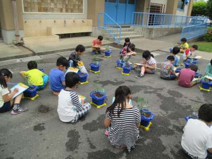 とても嬉しそうに伝えてくれた子ども達。今日は,ミニトマトのかんさつをして,かんさつカードに記録しました。