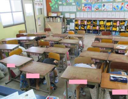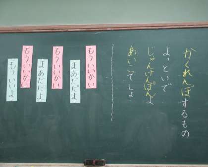 音楽の時間です。今日は「かくれんぼ」という歌を歌いました。歌詞とメロディを確認した後,みんなで歌おうとしました。