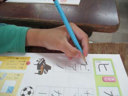 (1)よい姿勢(2)正しいえんぴつの持ち方 を意識することも大切です。今日は,基礎基本をあらためて確認したうえで,硬筆学習にのぞみました。
