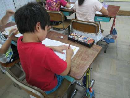 一生懸命書いていた子ども達。終わったあと,
