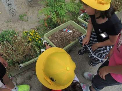 生活科の学習で中庭の中を散策しました。