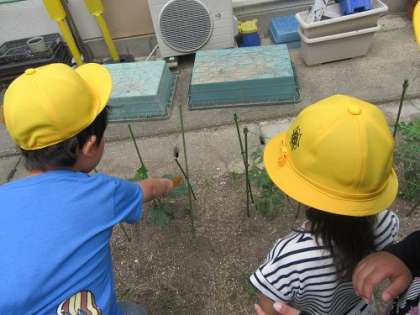 栽培委員が育てている野菜を見て,