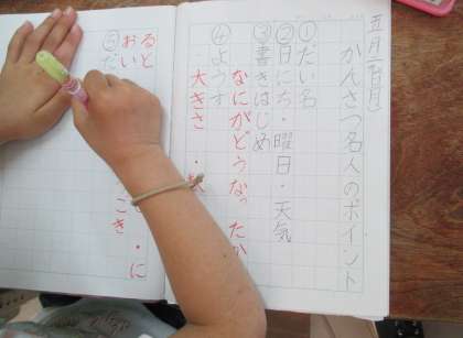 国語は「かんさつ名人になろう」という単元に入っています。今日は,かんさつ名人になるためのポイントは何かを,見本の文章からみんなでさがしていきました。そのあと,ノートにまとめました。かんさつ名人を目指して頑張ります!