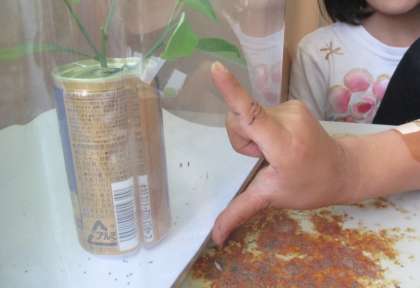 *虫かごに入っているあおむし用の“空き缶”