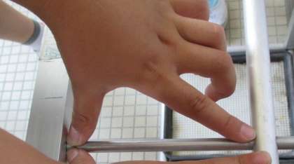 授業の終盤で,手や指を使って,身近なところから10cmに近いものをさがしてみました。