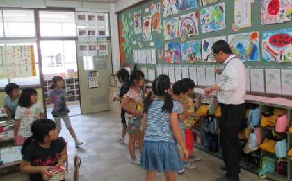 子どもたちは,嬉しそうにじーっと観察していました。とても珍しいようで,いつ“とんぼ”になるんだろうと不思議そうに見つめていました。成虫になるのが楽しみです!