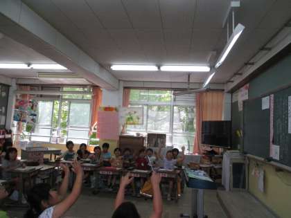 道徳の学習で,生き物の命について考えているとき,教室で観察していたとんぼがパタパタととびはじめました。みんなは,