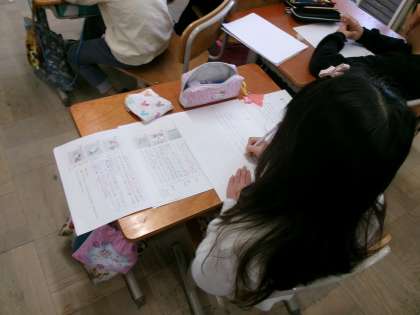 国語では、引き続き「紙コップ花火の作り方」の学習をしています。