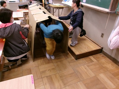 子ども達は、先生お手製のトンネルをくぐり変身しました。