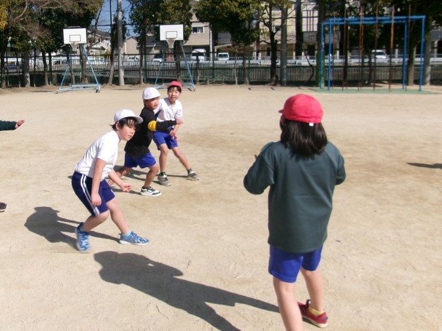 体育ではパスゲームをしています。