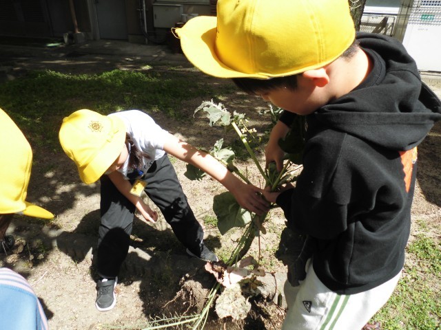 生活と理科の学習では、冬に育てた野菜を抜き、