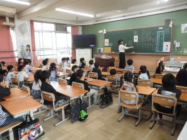 1年生は、初めての参観日でした。ひらがなの学習と「うたにあわせてあいうえお」では、口の開け方に気を付けて