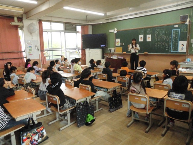はっきりと声を出して読んでいました。先生の話をしっかり聞いて学習していました。