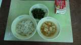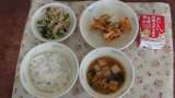 今日の献立は、ごはん・牛乳・鶏肉ととうふのくず煮・ だいこん葉のごまいため・みか...