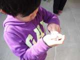 生活科「ふゆもげん気に」で,こま回しに挑戦しました。 ひもを巻き付けるのに苦戦し...