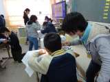 新年の遊びで「福笑い」を英語で試してみました。目隠しをしている人に,眉や目や...