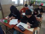 家庭科でミシンを使ってナップサックを作りはじめました。 先に出来た人がそうっと教...
