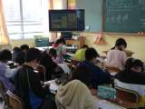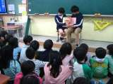 活動の様子です。 目を見て笑顔で話したり,「Hello.」と手を振ったりと工夫を...