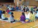 とても広くて綺麗な体育館です。 グループ仲良く食べています。
