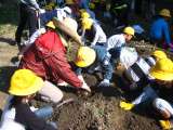 地域の方々にお世話になって,“サツマイモほり”をしました。 土の中から顔をのぞ...