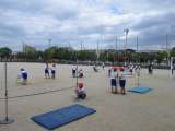 高跳びの学習をしています。 しっかりと踏みきり,足をあげて,バーを飛び越えていま...