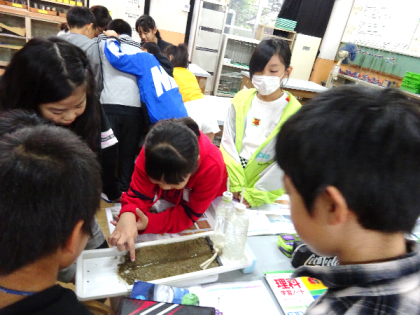 理科で流れる水のはたらきを調べる実験をしました。 京都市青少年科学センターから実...