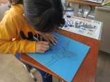 図画工作科では木版画に取り組んでいます。 下描きにどこを掘るか印を入れて,慎重に...