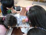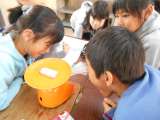 はかりを使って重さを測っています。 めもりの読み方に気をつけて活動できました。