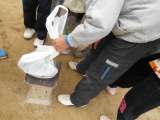今で学習したことを生かして,砂場で1kgの重さをつくりました。 体がだいたいの重...
