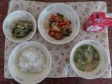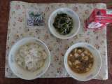 今日の献立は,麦ごはん・牛乳・マーボどうふ・ほうれん草ともやしのナムル・じゃこ...
