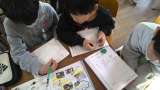 本で調べたことわざをかるたにして、かるた取りをしました。手作りのかるたで遊ぶのが...