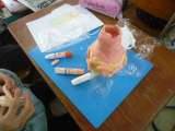 粘土のつけ方,粘土の色の組み合わせ方を考えて,生活の中で使うものを作りました。