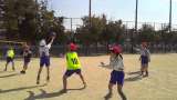 エンドボールを楽しむ様子が見られました。赤帽の子はゴールを決めると得点が2点入り...