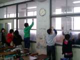 そうじの写真? いえいえ,家庭科で学んだ『新聞紙』を使用した窓ふきです。 ぞう...