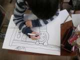 図工の学習で,心にのこったことを絵に表しています。 みんな思い思いに動きのある...
