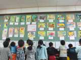 先日完成した作品の鑑賞をしました。 色使いやアイデア,工夫しているところなど,友...