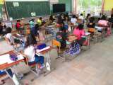 算数プリントや漢字スキルに集中する子ども達。 授業中はけじめをつけて学習すること...