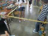 1立方メートルがどれくらいの大きさなのか,物差しを使って体感しました。「4人は...