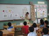 絵の具の学習でした。後片づけの時間の風景です。パレットや筆洗を洗うとき,筆で洗う...