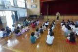 今朝はお楽しみの読み聞かせでした。1組は「だじゃれべんとう」、2組は「桃太郎」、...
