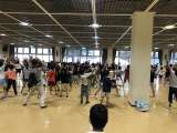 朝の集いはプレイホールで行い、新しく来られた学校も交えて学校紹介やラジオ体操をし...