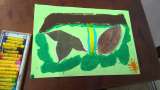 お気に入り葉を色画用紙に貼って、それを利用してクレパスで絵を描きました。 楽しい...