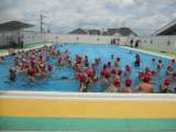 夏休みのプール開放に、たくさんの1年生が集まっています。太陽がギラギラ照りつける...