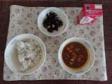 今日の献立は,麦ごはん・牛乳・チキンカレー・ひじきのソテーです。 いちから手...