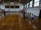 倒立やブリッジの練習をしています。 休み時間に希望者が体育館へやってきて,個人...